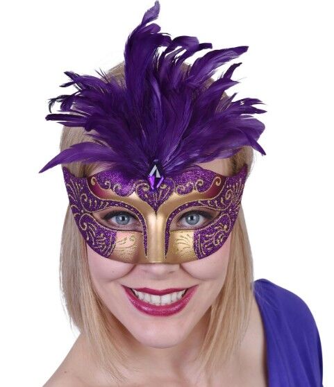 Gabrielle Purple Feathered Masquerade Eye Mask