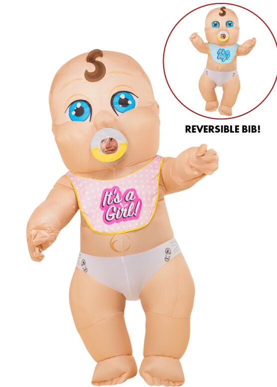 Make your big announcement unforgettable with this Gender Reveal Inflatable Baby Adult Costume, the perfect show-stopping outfit for reveal parties, baby showers & over-sized celebrations!